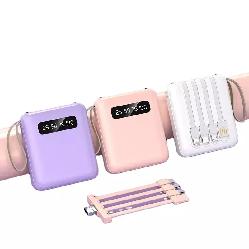 20000 10000mAh New Power Bank with 4 Charging Cables Mini Large Capacity Mirrored Power Bank Portable Fast Charging Powerbanks