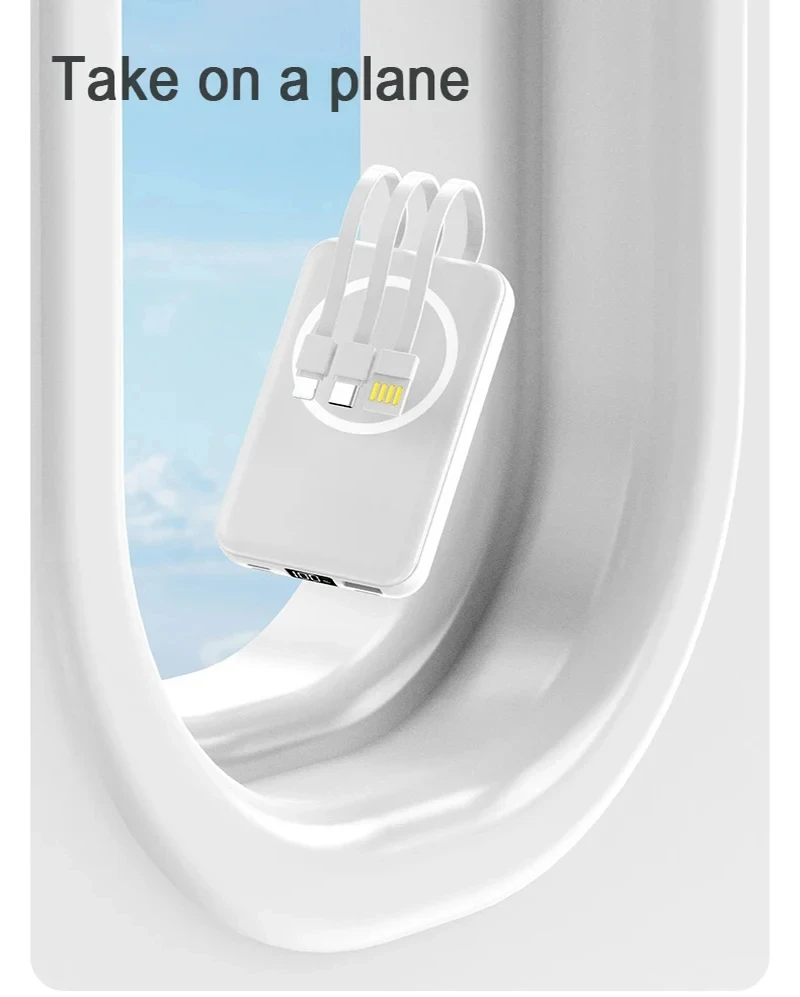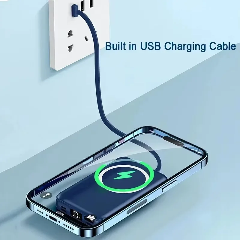 Portable Power Bank 20000mAh Wireless Powerful Magnetic Power Bank Built in 3 Cable Powerbank Fast Charging For iPhone 15 Xiaomi